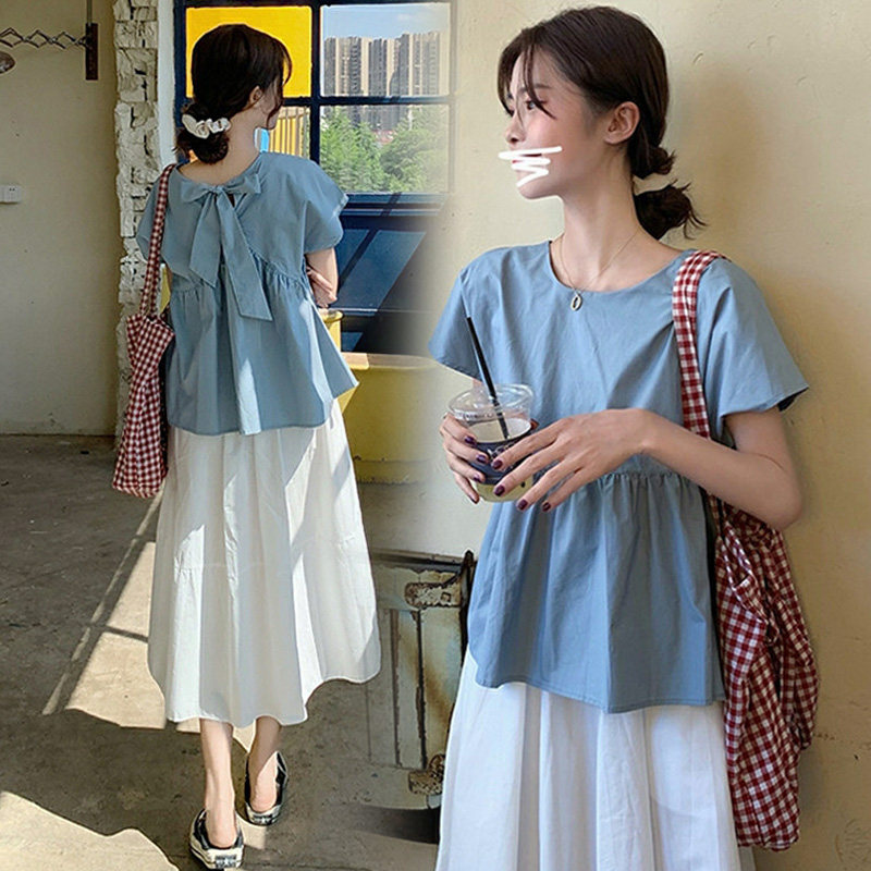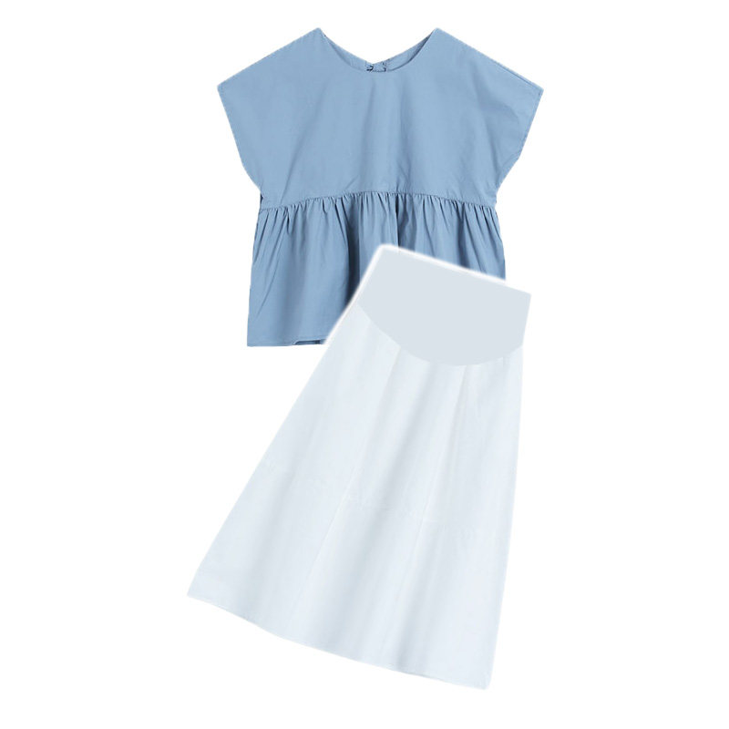Pregnant woman suit Summer thin snow-spinning shirt blouses net red gestation woman dress in summer dress Fashion half body dress Two sets summer