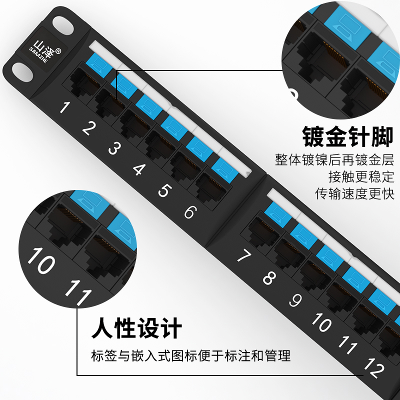 Shanze BL6-24 six-category distribution frame 24-port CAT6 Gigabit network engineering gold-plated 1U rack-mounted crystal