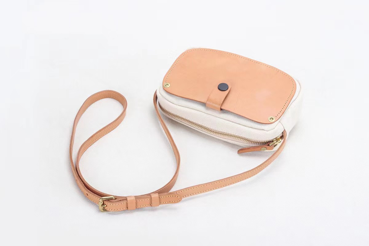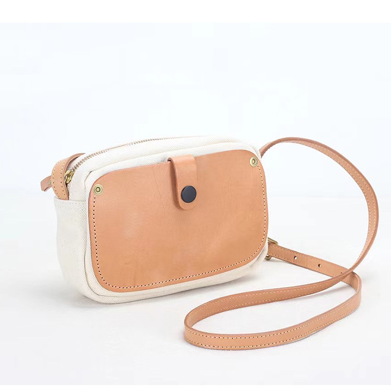 Messenger bag female canvas with cowhide shoulder bag small bag Japanese retro satchel niche design texture mobile phone bag