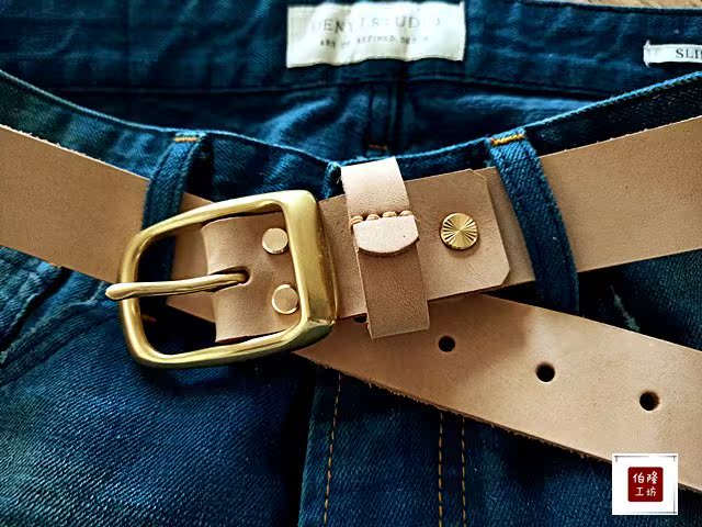 Fully handmade first layer cowhide matte vegetable tanned leather cowhide belt belt men's narrow 3 3 belt boutique pick up leaks