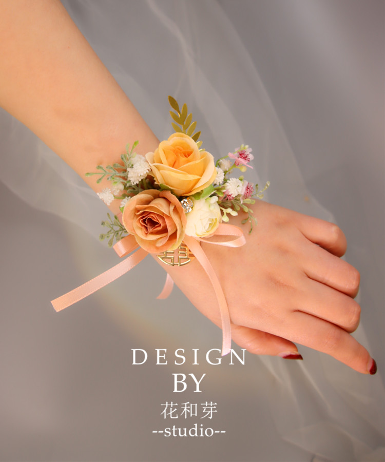 2021 Original Orange Yellow Flowers Sen is a leaf - like Bride Bride Married Bride Opening Ceremony