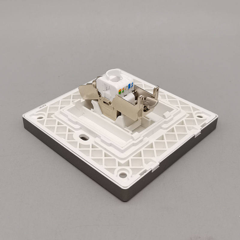 Dark gray 86 type single port RJ45 seven shielded network panel CAT7 10 Gigabit shielded computer network line wall socket
