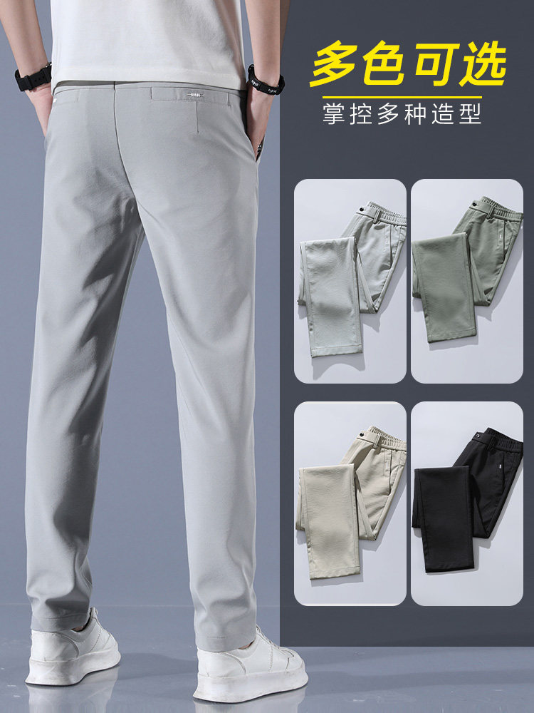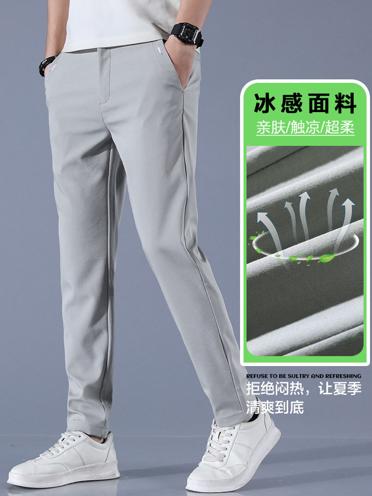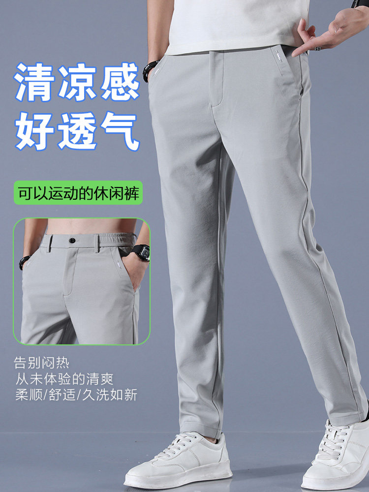 Men's casual trousers summer ice silk thin section air-conditioned quick-drying sports pants men's loose straight Korean style trendy drape