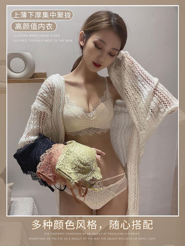 Korean summer lingerie women's small breasts show big gathering no steel ring sexy lace cute suit adjustable breasts