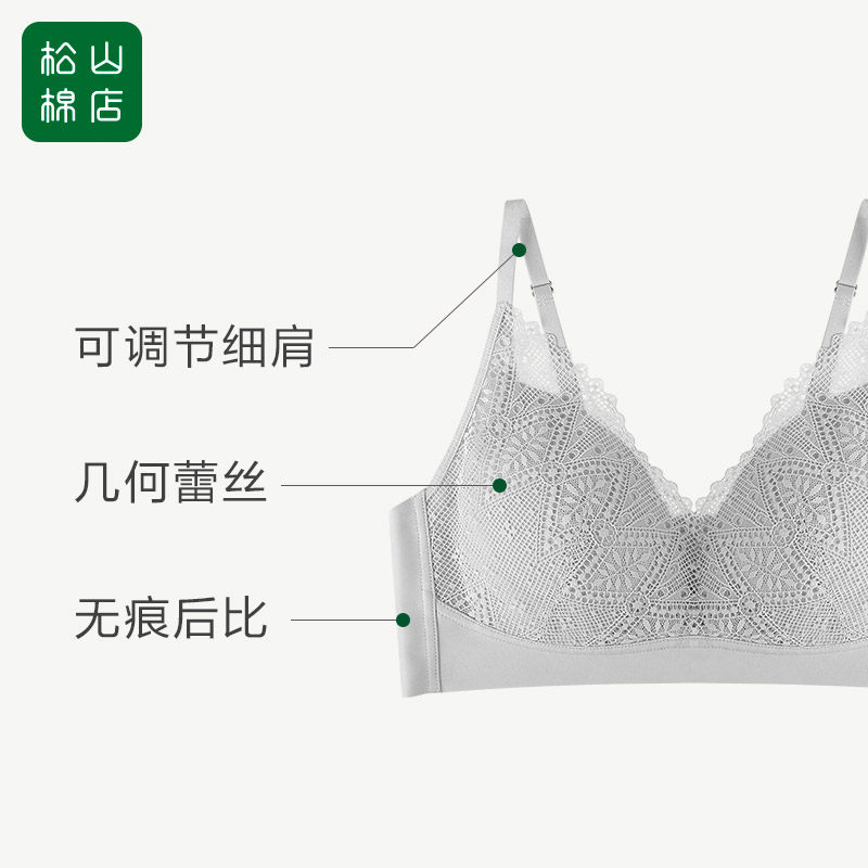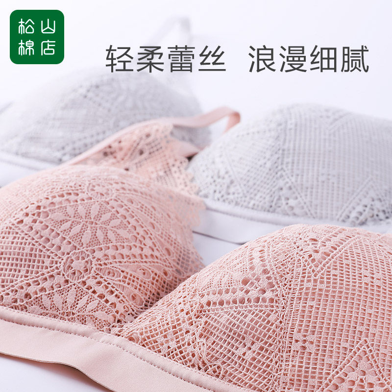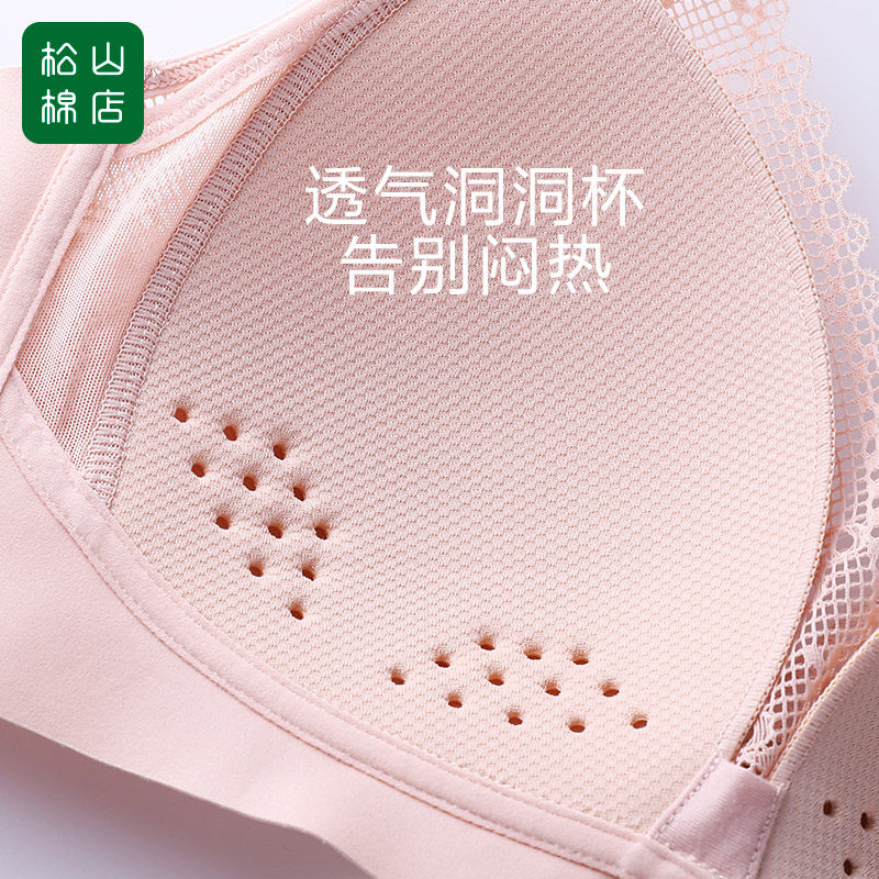 Matsuyama Cotton Shop Hole Cup Bra Summer Breathable Thin Lace Big Breast Shows Small No Steel Ring No Trace Bra Underwear