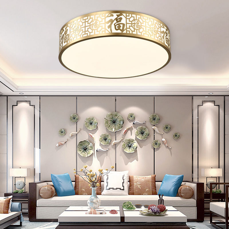 New Chinese style Fu character ceiling lamp living room lamp Chinese style Chinese classical Zen room bedroom round copper lamps