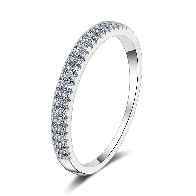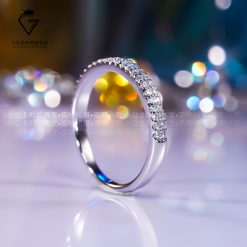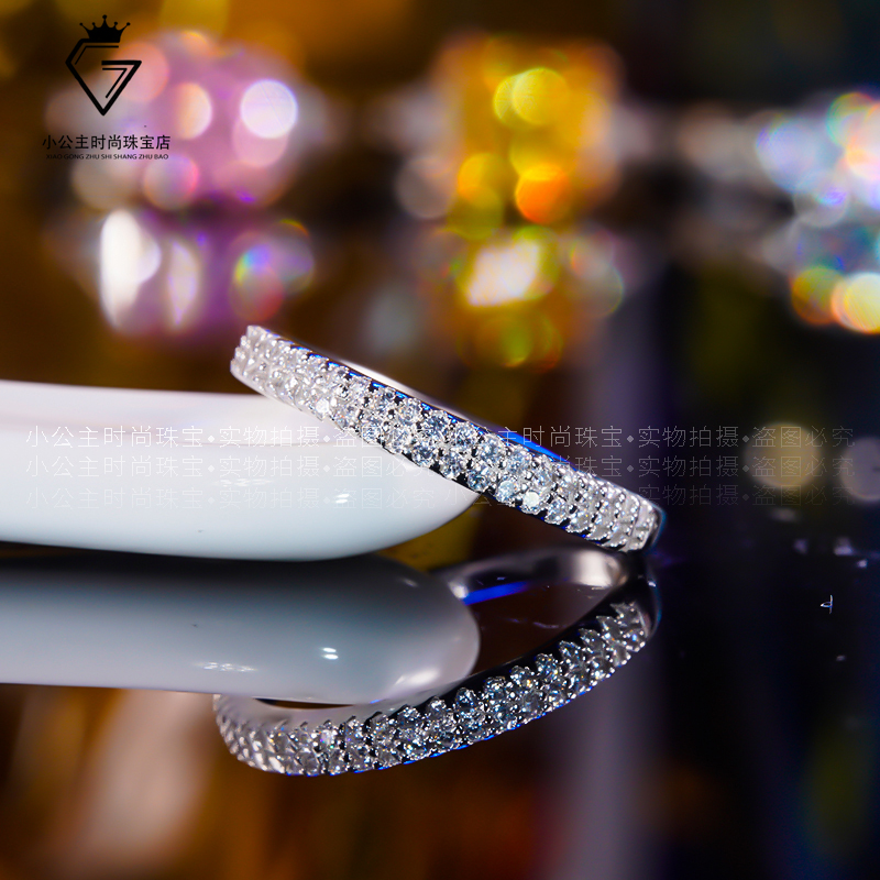 18K Platinum Half Ring Row Drilling Ring Imported Mosanstone Drill Ring Female Broken Diamond Platinum Laminated Ring 100 Lap Tail