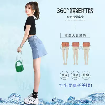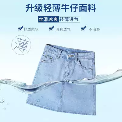 Denim short skirt women's summer thin section 2021 new a-line skirt high waist thin man anti-light skirt