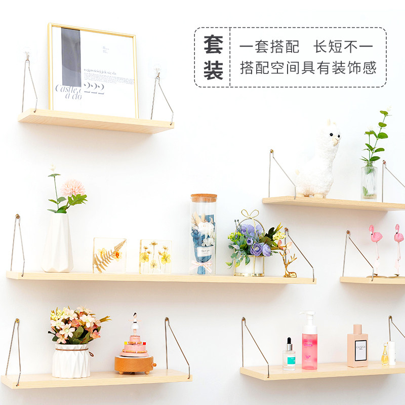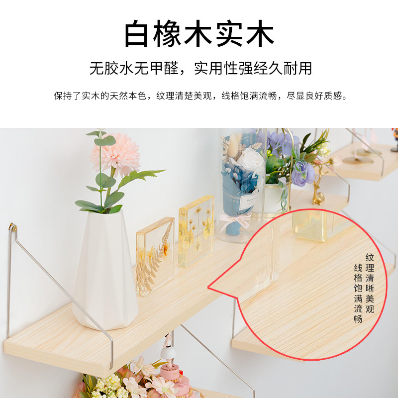 Hole-free solid wood wall wall shelf one-word partition living room bedroom wall decoration creative hanging wall laminate