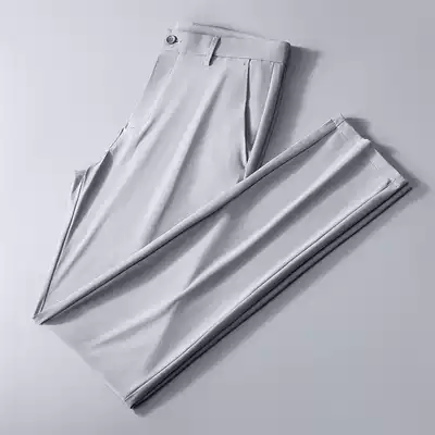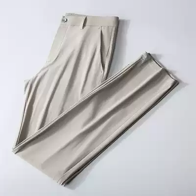 Ice silk trousers men's summer thin non-ironing anti-wrinkle loose straight tube business leisure hanging feeling silky high elasticity ultra-thin