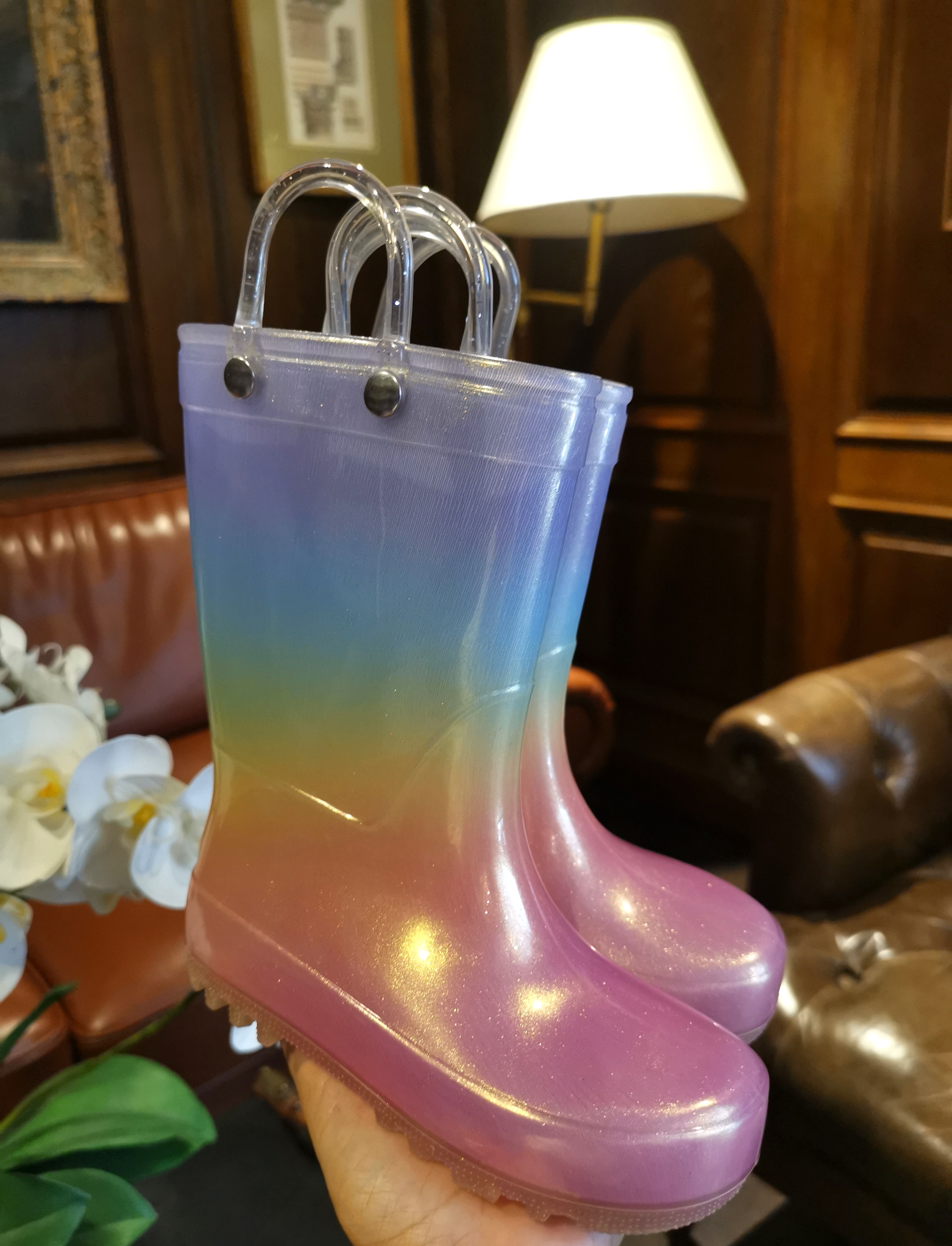 Parent-child export rainbow children's rain boots primary school girl treasure kindergarten non-slip mid-tube rain boots rainbow four seasons water shoes
