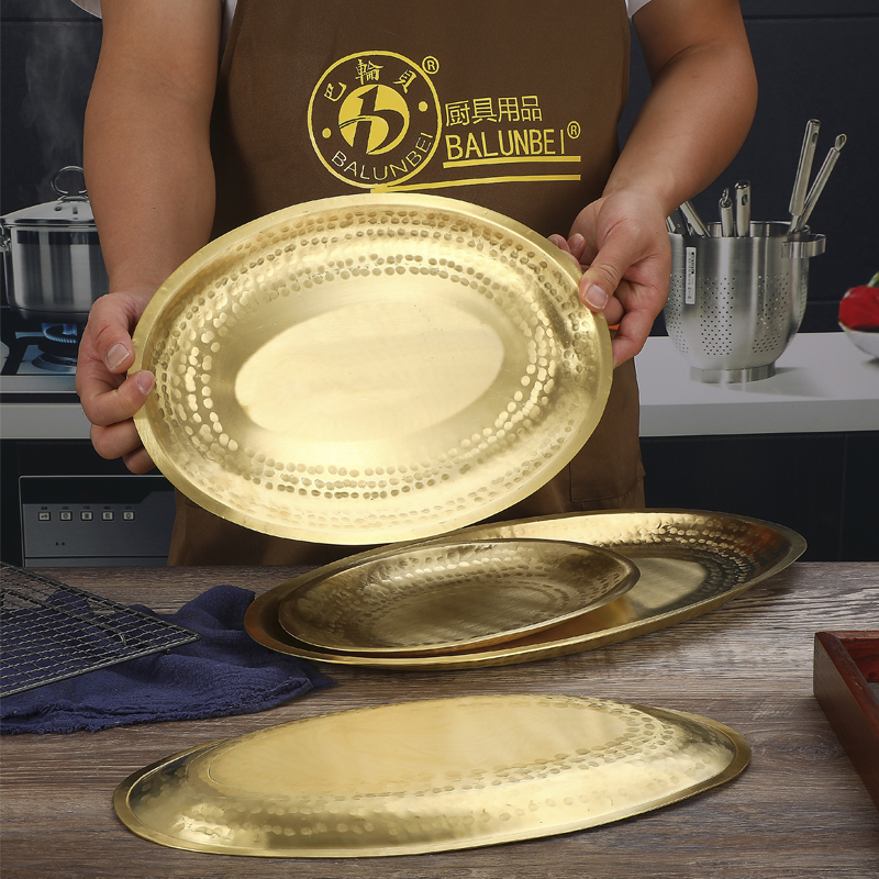 Manual chugging of brass dishes Bronze Dish Egg-shaped Disc Oval Copper Disc Copper Plate Copper Dish Bronze Plate of Bronze Dish