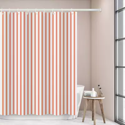 Pink striped shower curtain waterproof and mildew-proof thickened impermeable powder room bath partition window Bathroom door curtain curtain net red