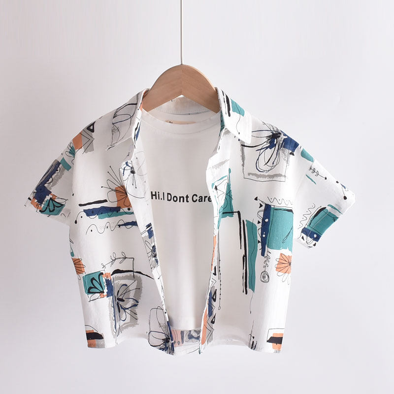 Retro style boys short-sleeved shirts summer new children's tops summer clothes baby Western style thin shirts breathable