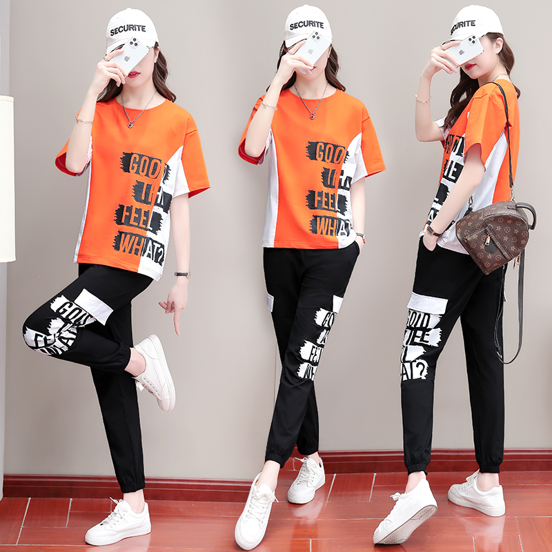Sports Casual Suit Women 2021 New Summer Port Wind Fracking Street Less Fashion Relaxation Student Boomer two sets