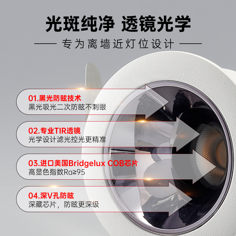 S01 spotlight embedded cob deep anti-glare aisle led no main light living room near the wall wall washer light hope lighting