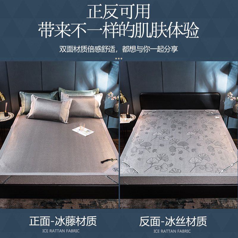 Rattan mat three-piece set of household children's winter and summer straw mat summer pure rattan summer foldable ice silk mat