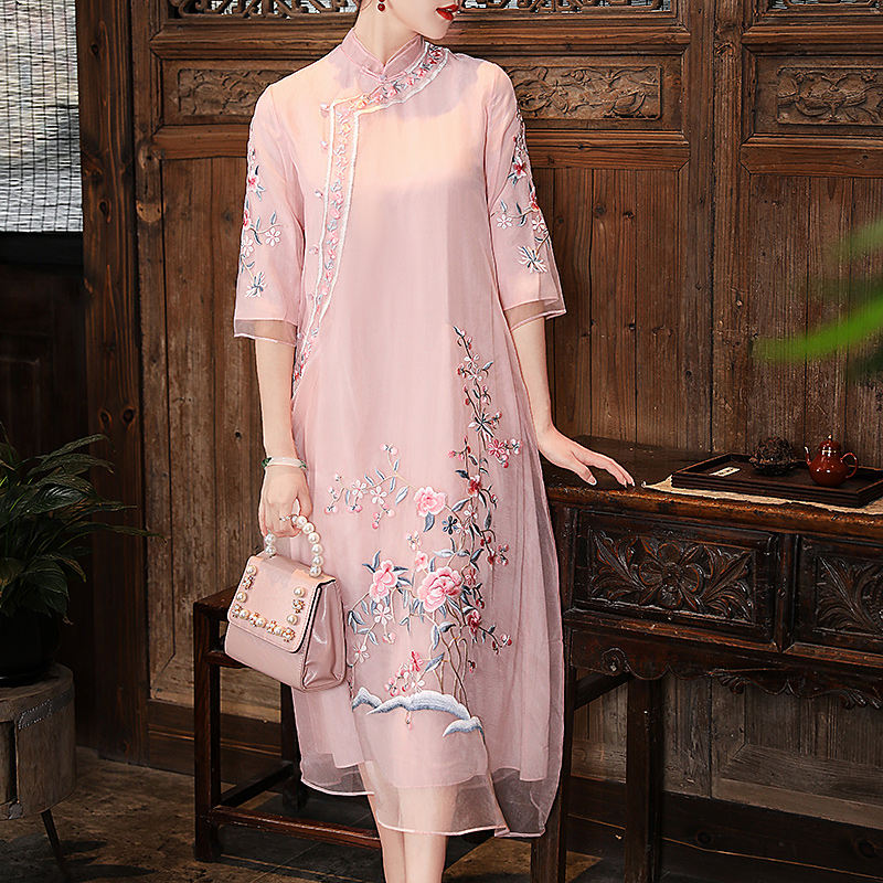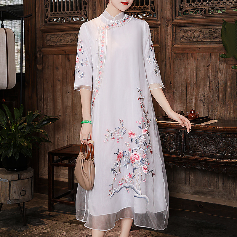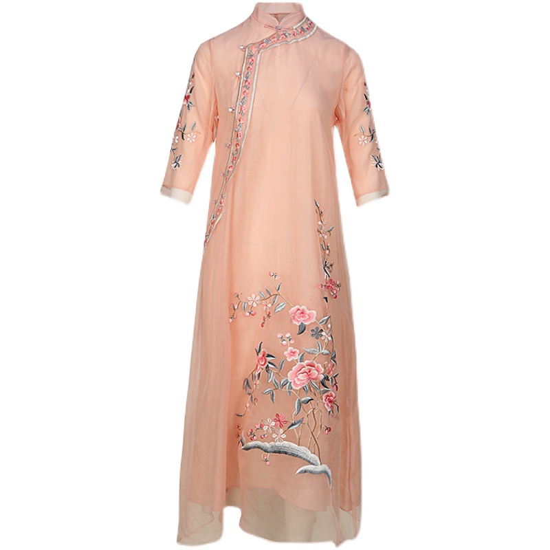 Cheongsam women's summer improved long version large size 2021 new Chinese style Tang suit Hanfu retro ethnic style dress