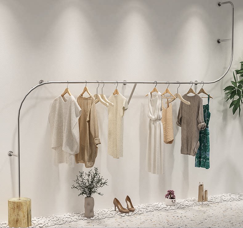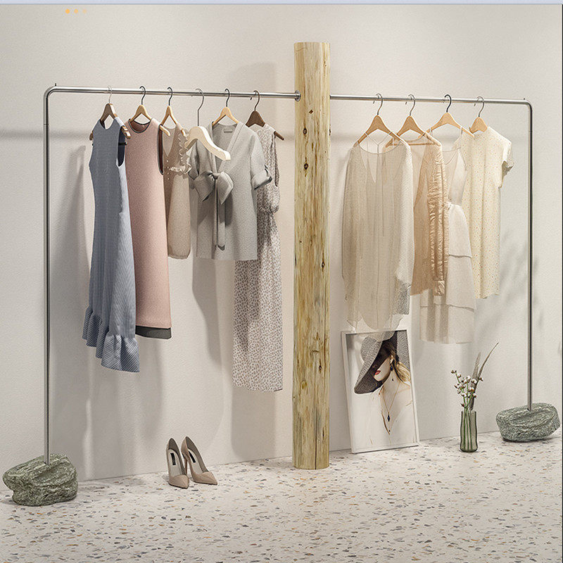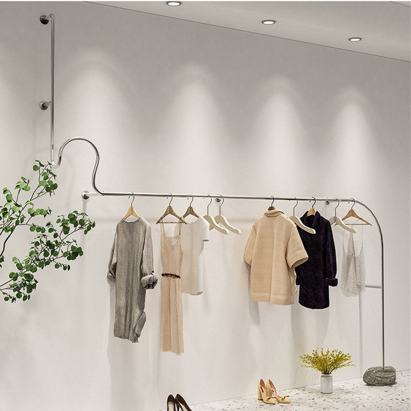 Women's Clothing Shop Furnishing Design Effect Guitou Nets Red Clothing Store Arrangement Show Shelf Stainless Steel Floor Type Hangings Shelving