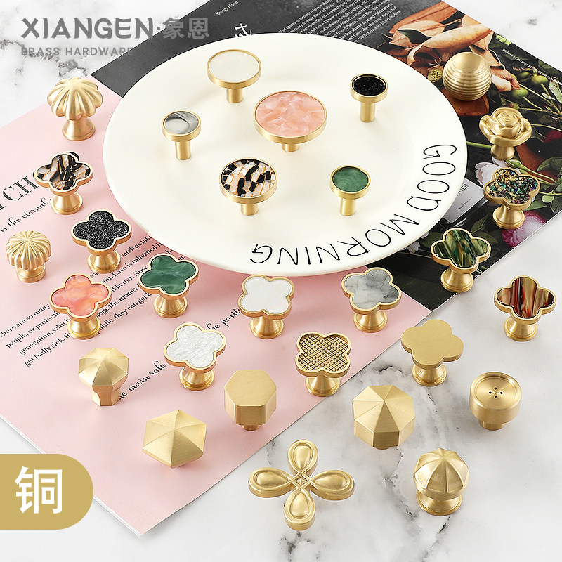 Personality Creativity Cute Cabinet Door Handle Pure Copper Light Lavish Nordic Four Leaf Grass Drawers Single Hole Full Brass Integral Cupboard Handle