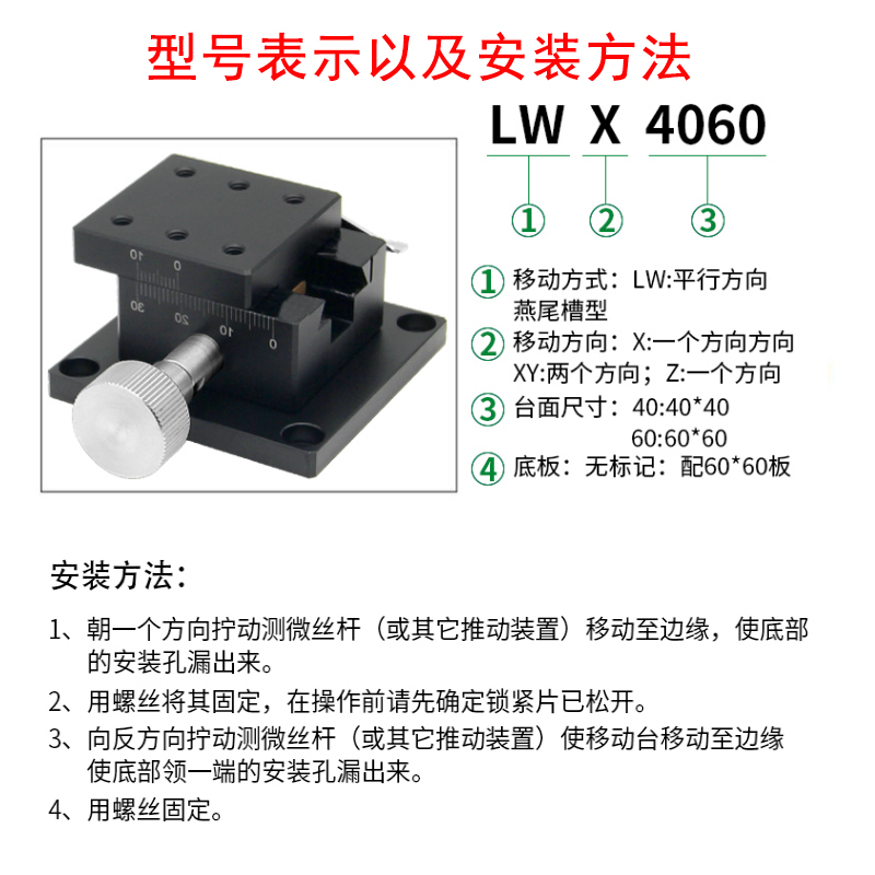 X-axis manual displacement platform Precision rack moving dovetail groove slipway LWX2542 4040 4060 4090