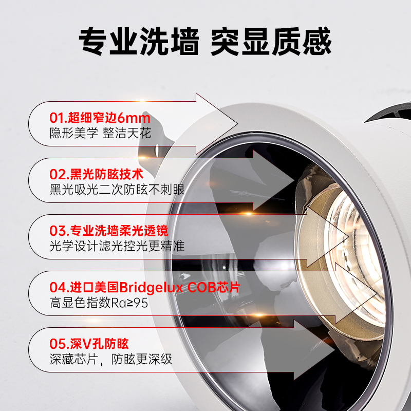 S08 anti-glare spotlight embedded cob deep cup home without main light living room background wall wall washer light hope lighting