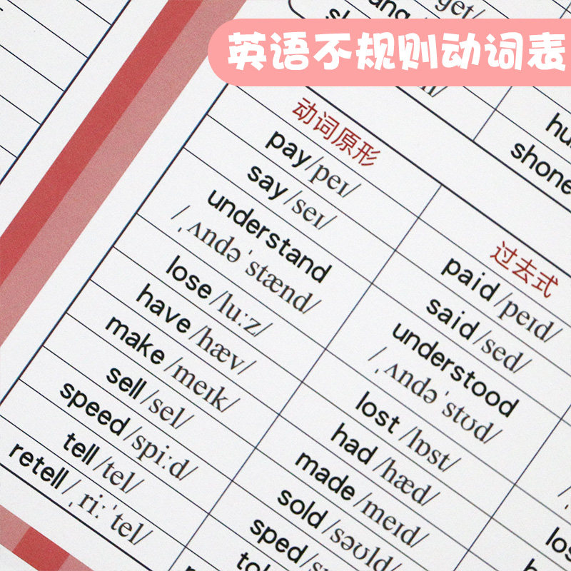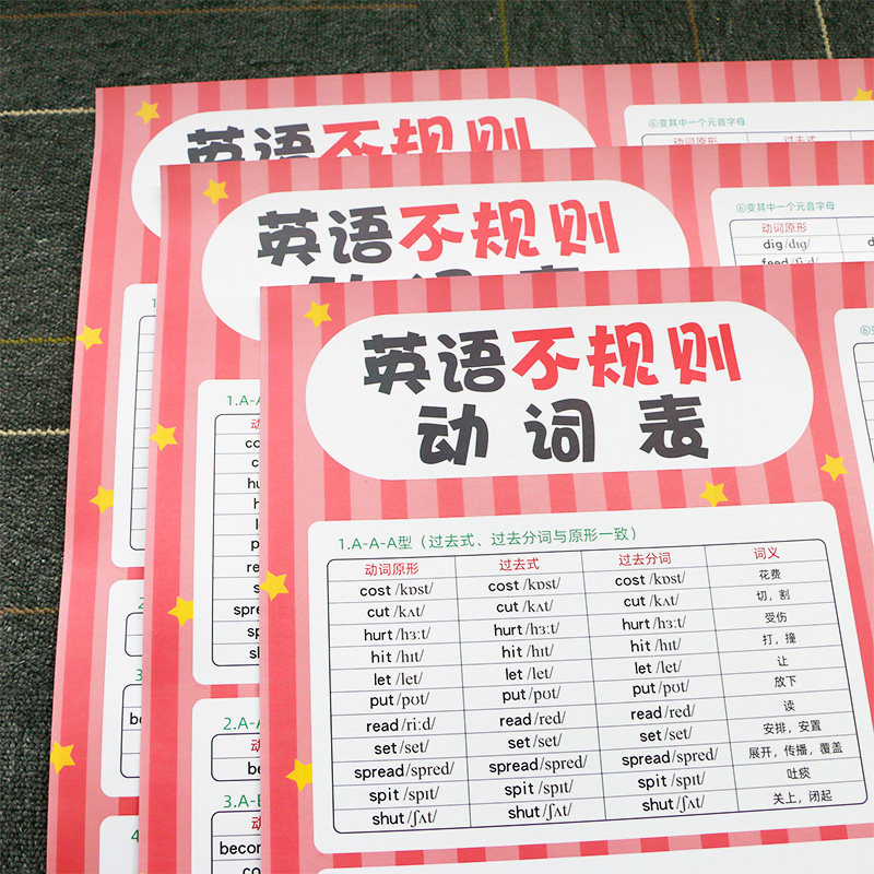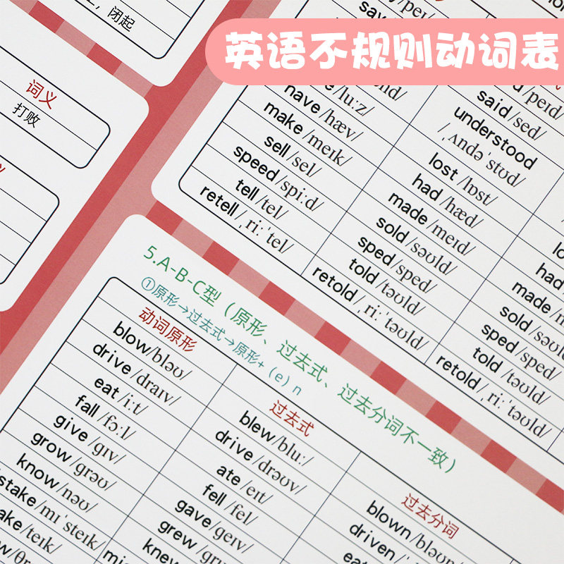 Primary school junior high school English irregular verb table prototype past tense noun plural adjective deformation wall chart stickers