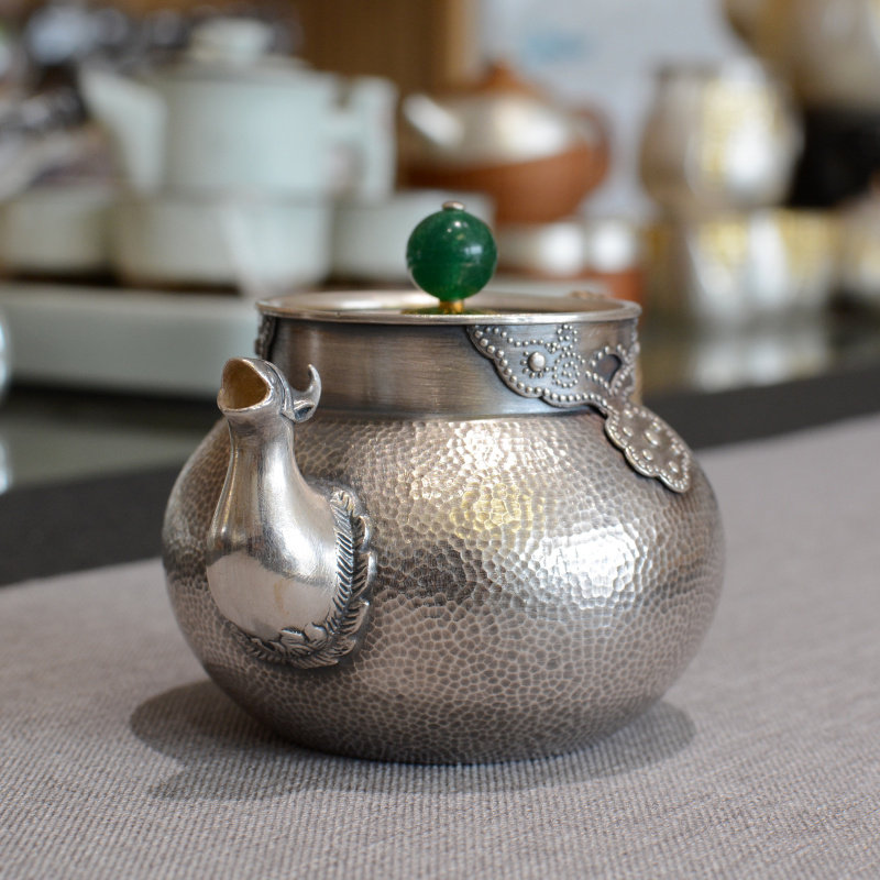 Hammer Silver Kettle 999 pure hand - made teapot household tea ceremony high - grade kung fu tea gallery collection