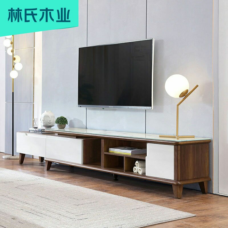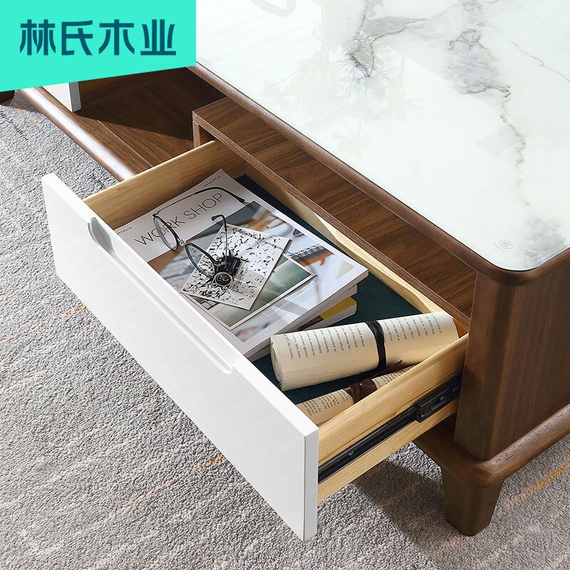 Lin's wood industry minimalist marble tattooed solid wood footed living-room TV local cabinet tea table combined rock board furniture LS058