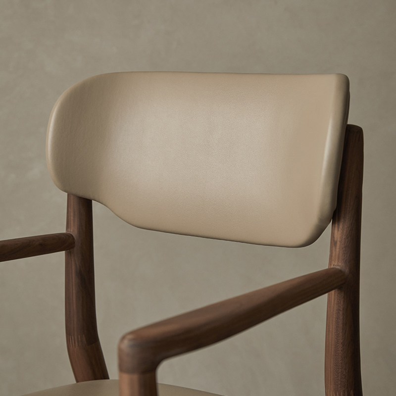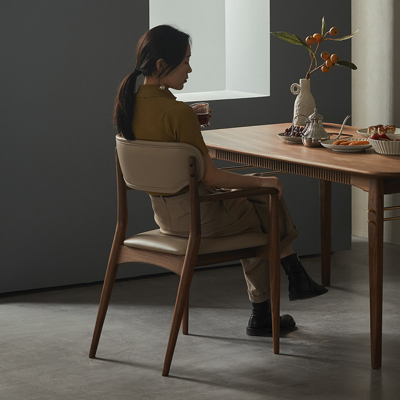 Park Jiawood made black walnut leather chair Nordic Restaurant Solid wood Modern Back to Soft Bag Desk Chair