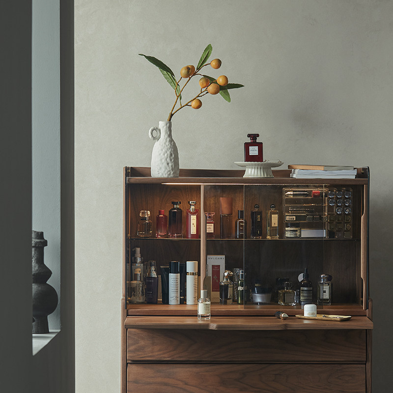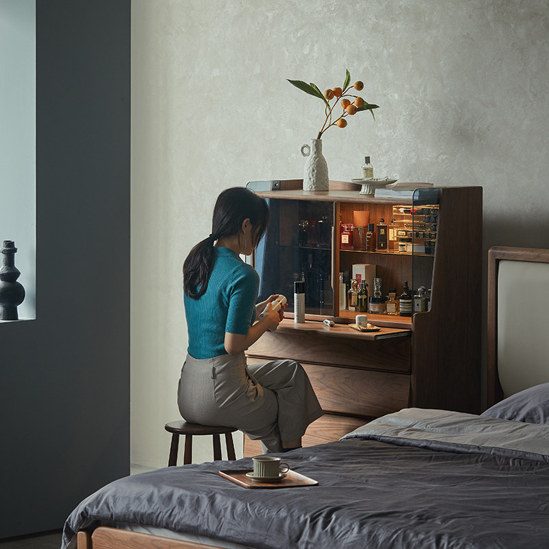 Pu Su Wood designer black walnut solid wood cupboard bedroom living room tea cabinet storage side cabinet dressing table