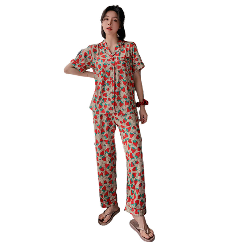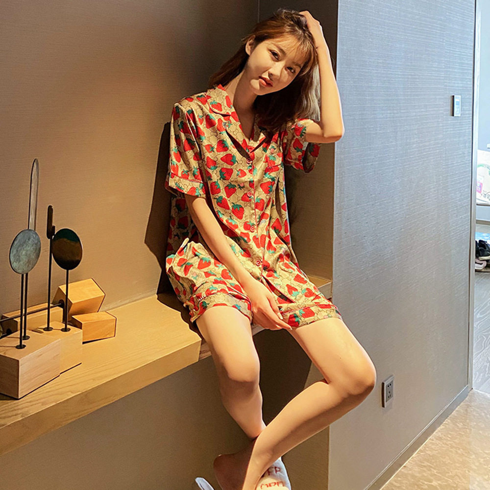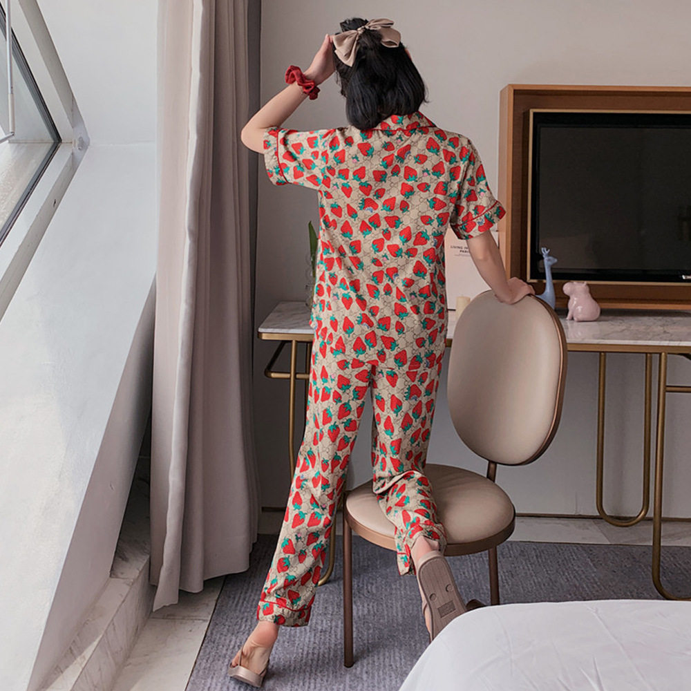 Ice silk sleepwear women Summer slim fit sweet and short sleeves Two sets Korean version Silk Casual Breathable Home of IB