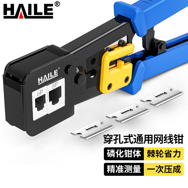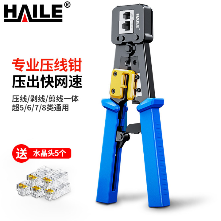 Haile (HAILE) network crystal head crimping pliers seven types of professional-grade pliers through-hole super 5 five 6 six 7 eight types of multi-function 8P network cable measuring instrument repair kit