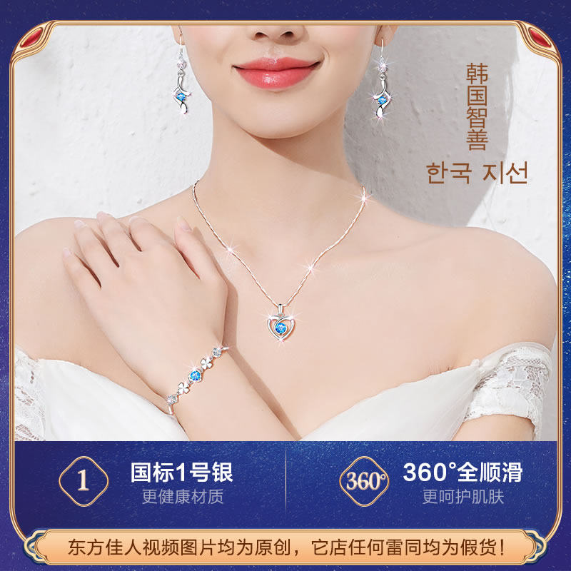 Natural crystal gemstone 999 sterling silver necklace earrings hand clasp set jewelry silver jewelry three-piece girl birthday gift