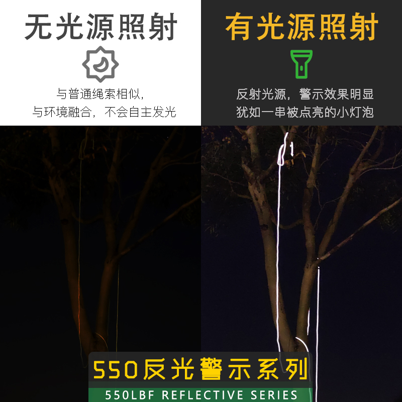Reflective series 550 pounds seven-core polyester fiber umbrella rope outdoor warning rope 4mm 7-core tent canopy reflective rope