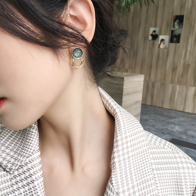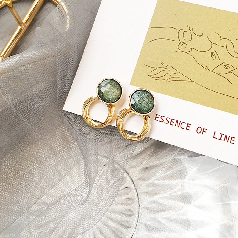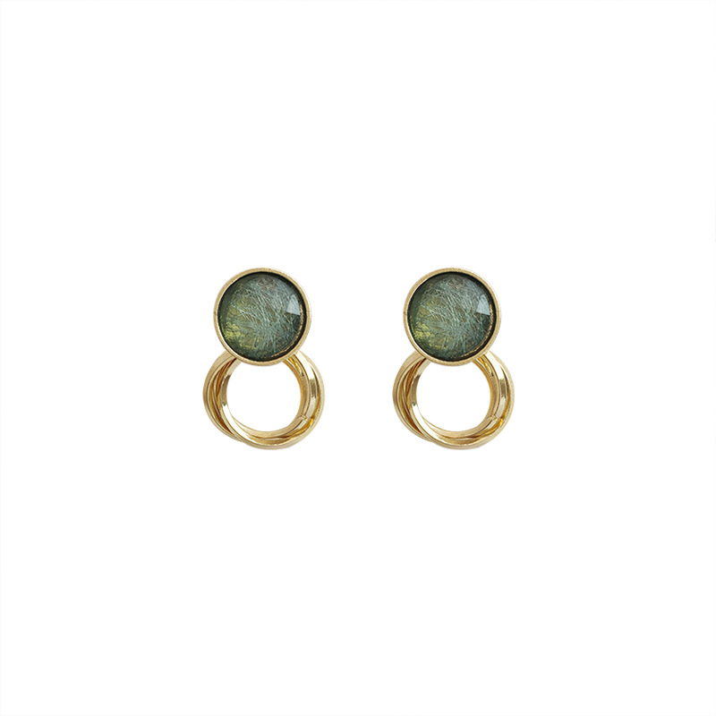 Silver Needle retro Drawing Silver Needle (Wine Red) Retro Wire Drawing Silver Needle Blue Resin Green Earrings-Silver Pin Green Letter H Ear Pin-Silver Needle Ancestral Mother Green Gem Ear Nail-Silver Pin Green Square Ear Pin-Silver