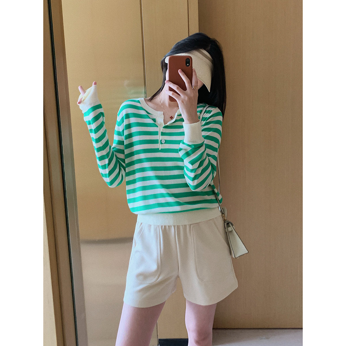 Hood-shirt rice black striped hood green striped buttons Mi Black Striped button Shirts Green Stripes