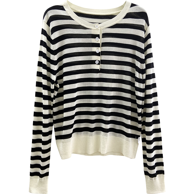 Broken Yard clear bin RMB199 2 pieces Zone Stripes Coloured Knitted Cardiovert Woman Breathable small Hood Shirt