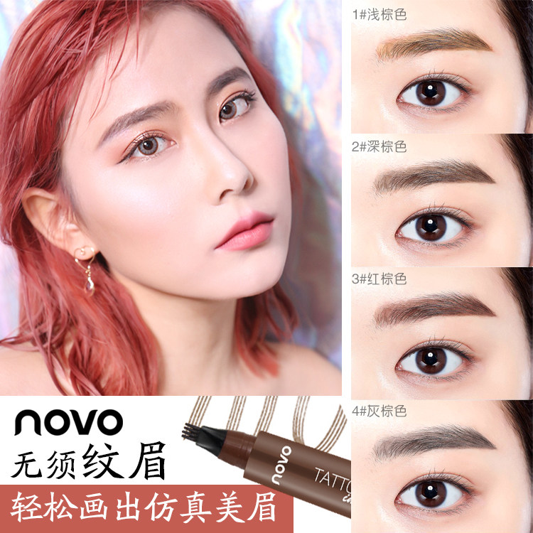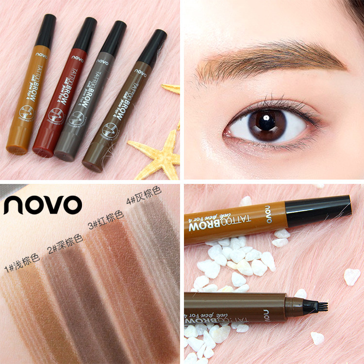 NOVO Four bifurcated durable water brow waterproof color makeup not off color brown brow pink brown deep brown red brown