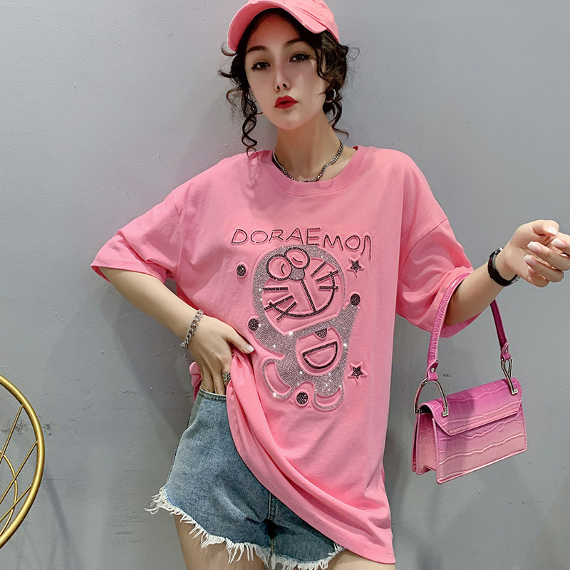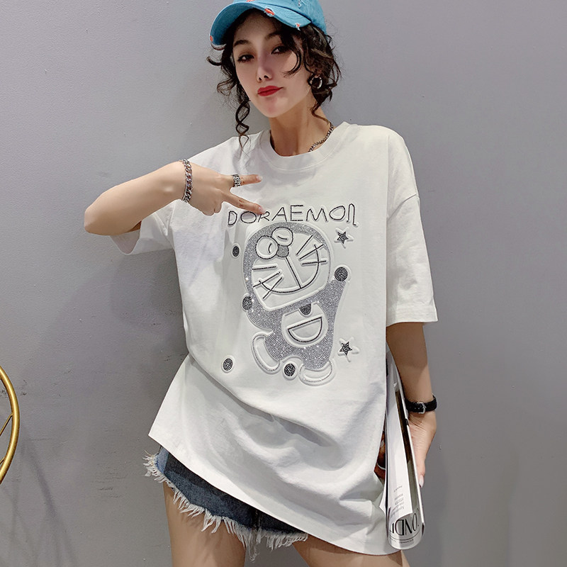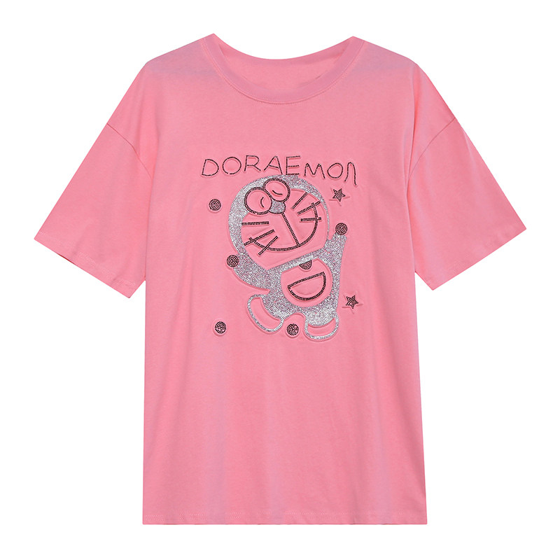 Cartoon Doraemon A Dream loot 2022 Summer new foreign Piers to lean on a long version of T-shirt in cat short sleeve blouse