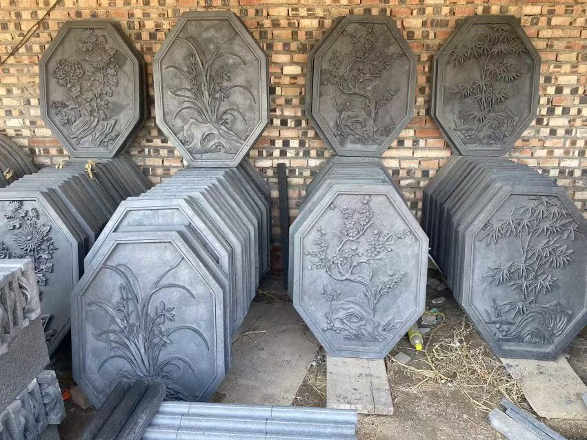 Antique brick carved Chinese diamond peony pattern relief ancient and outdoor wall decoration hanging wall wall