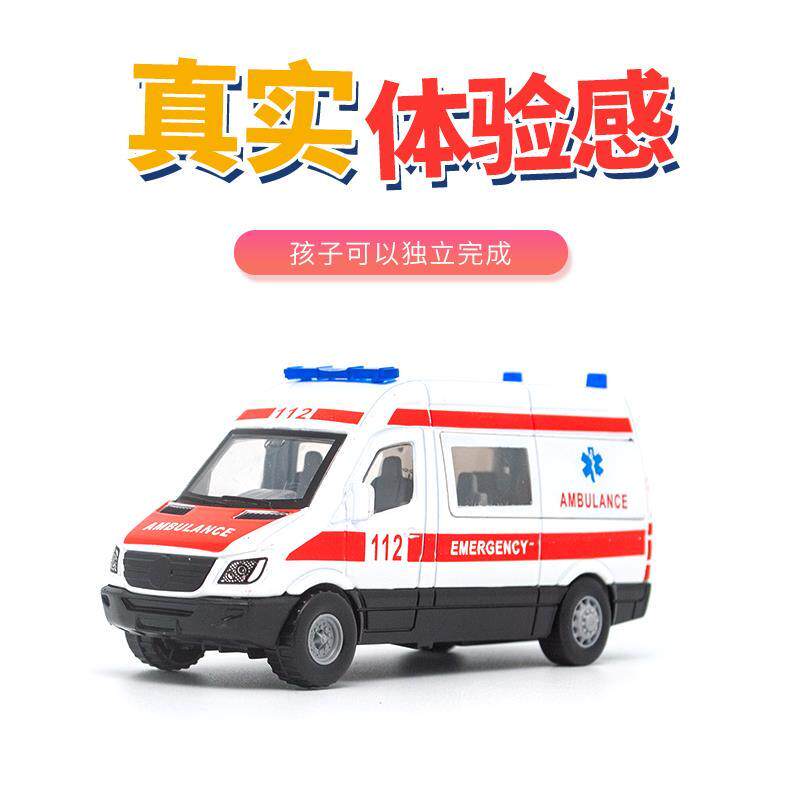 Baby children toys 120 ambulance rescue toys Police car model simulation car boy Alloy pullback