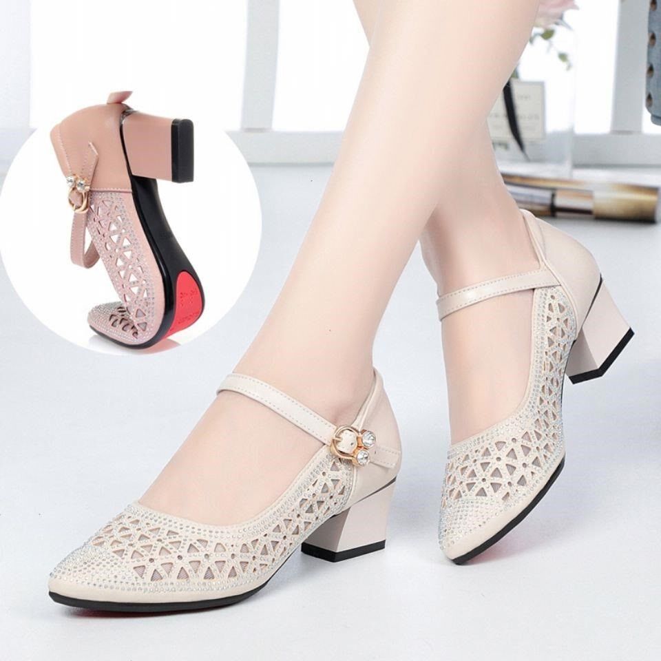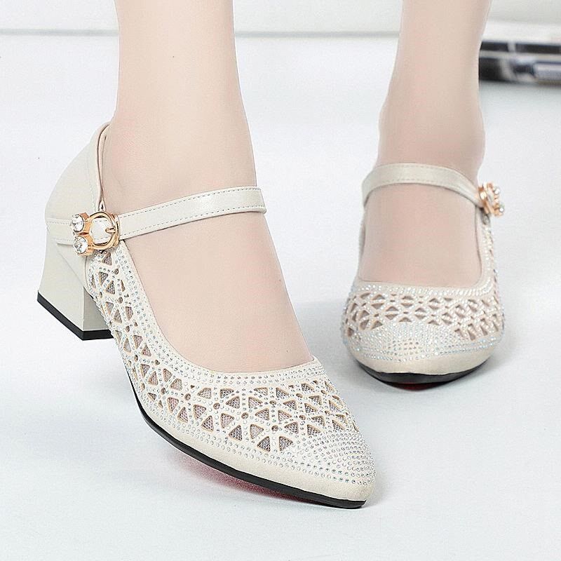 Sandshoes Women 2021 New High Heel Sandals Sandals Sandals Sandals Sandals Shoes Hollowed-out Breathable Single Shoes New Soft-bottom Mom
