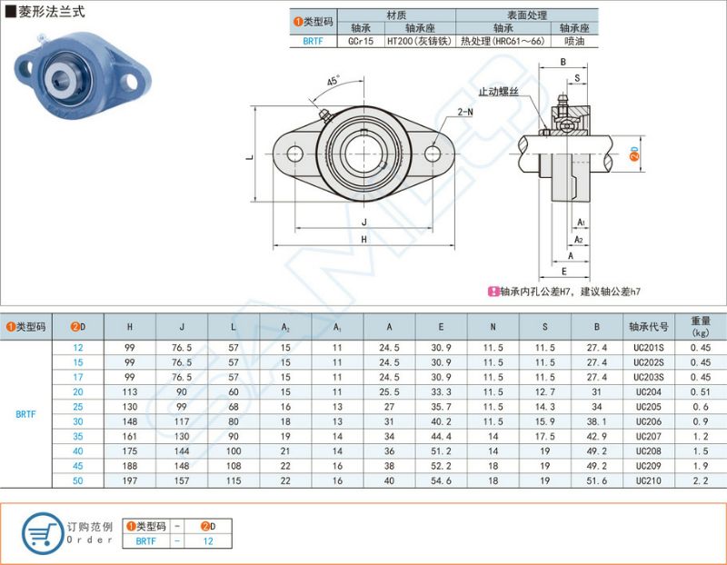 Diamond-shaped flange with seat bearing BRTF12 15 17 20 25 30 35 40 45 50