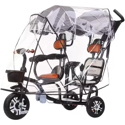 Double baby car raincoat Tricycle transparent rain cover Twins warm stroller cover cold