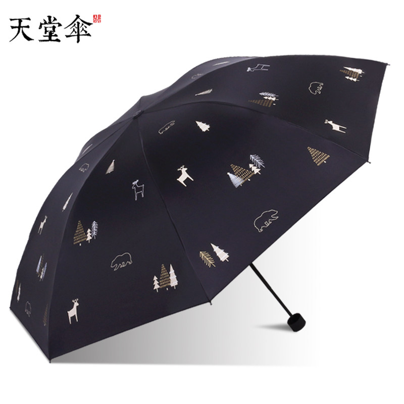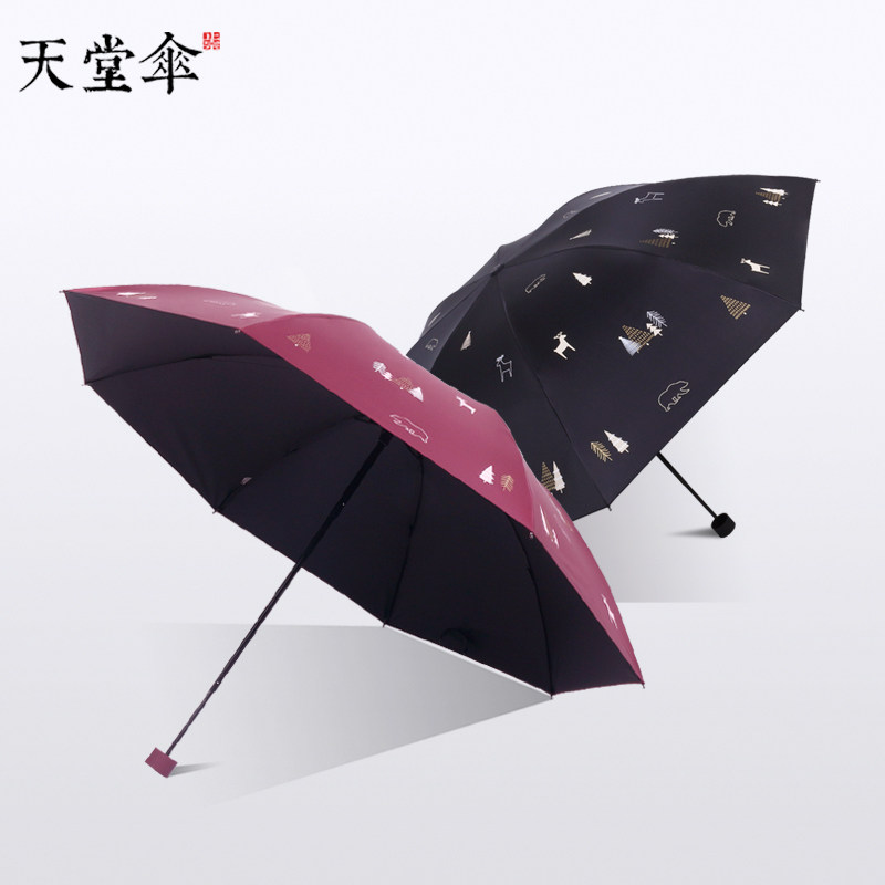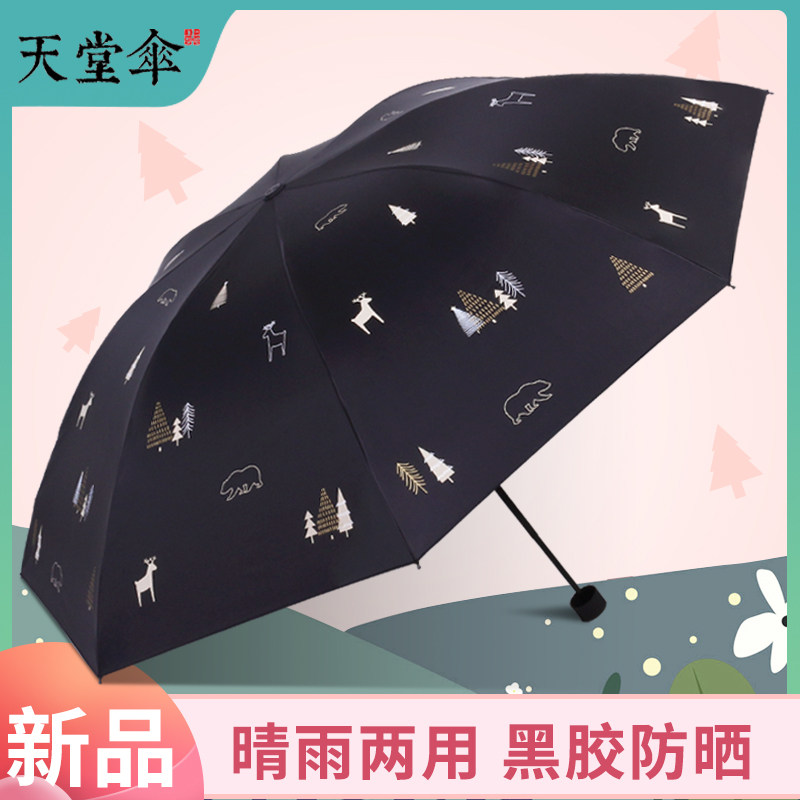 Heavenly Umbrella Women's Sunny and Rain-proof UV Shading Umbrella Three Folding Umbrellas Male Black Rubber Sunscreen Beach Umbrella Sturdy