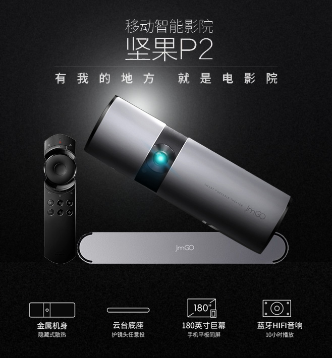 Nuts P2 projector Charging portable phone pitching screen Bring your own high fidelity sound office entertainment mobile cinema-Taobao