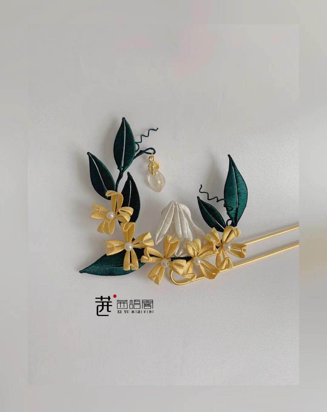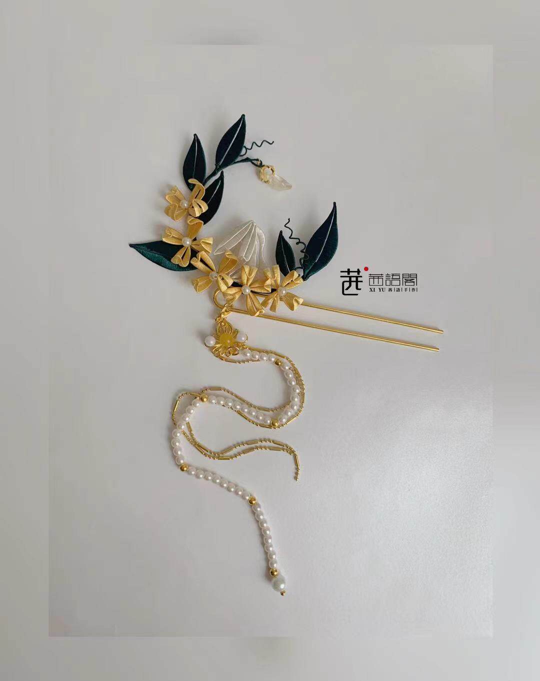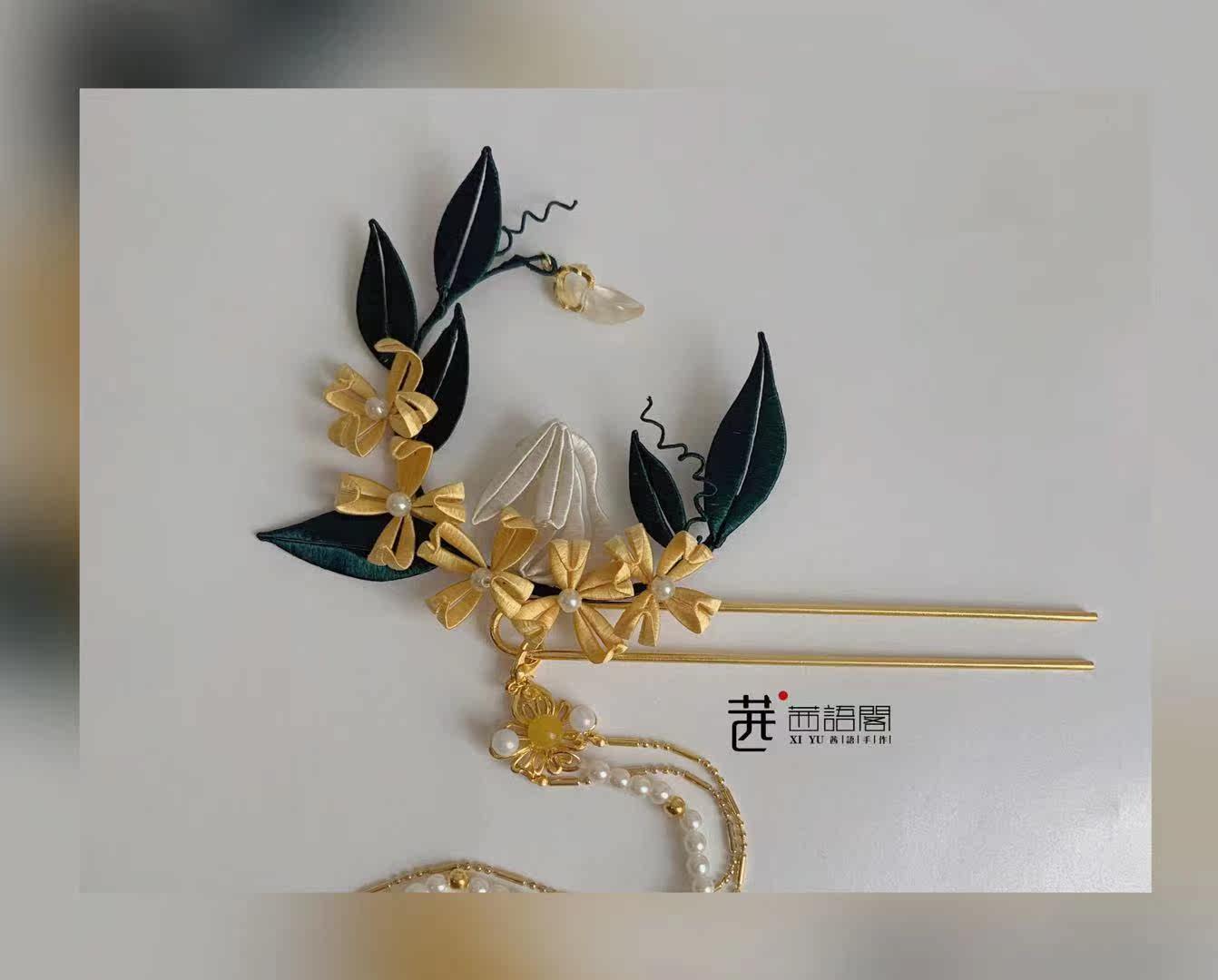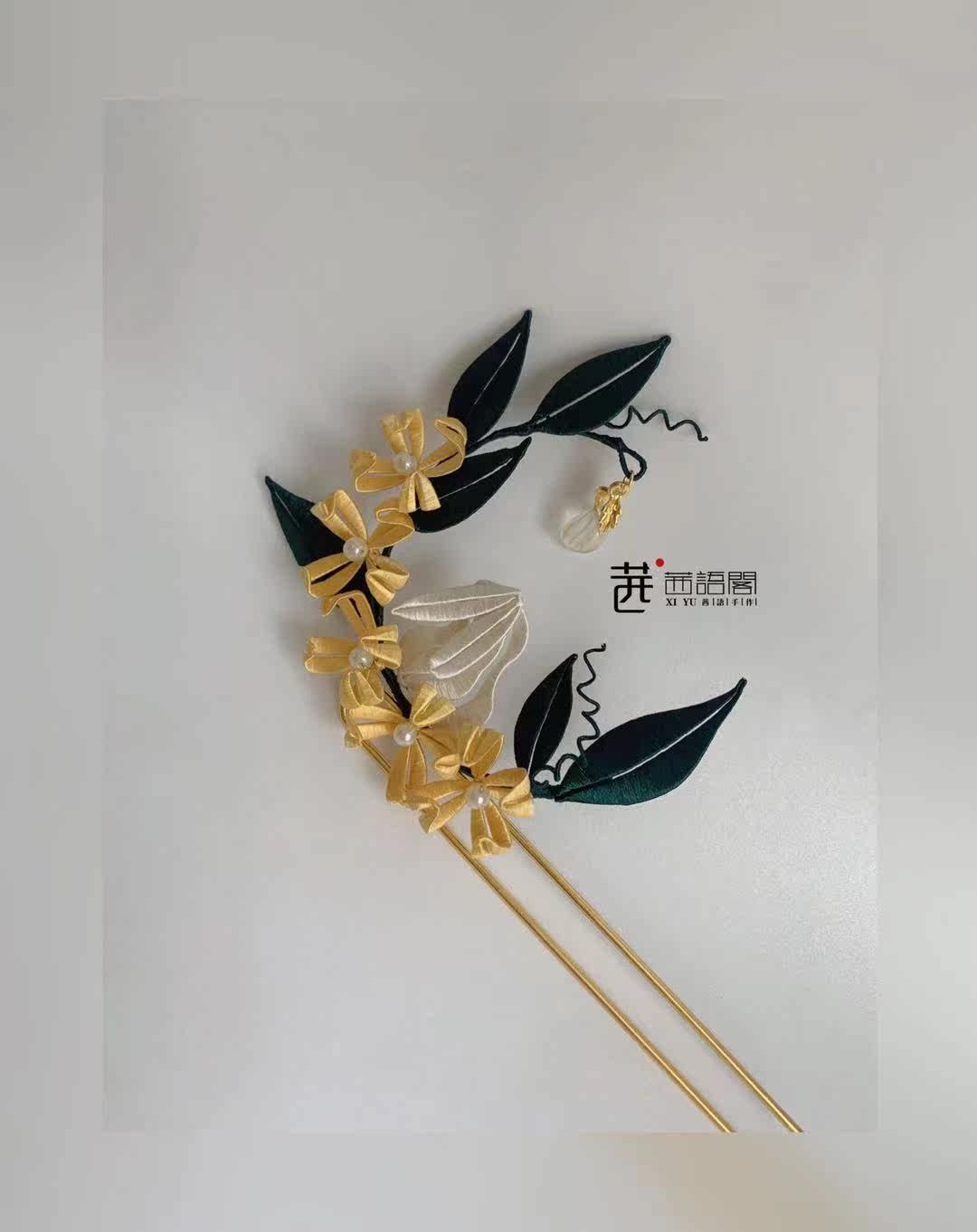 Original Design Jade Rabbit Series Golden Gui Yingxue Rabbit Winding Flower Hairpin Hanfu Necklace Can Match Tang Ming Song Hanfu