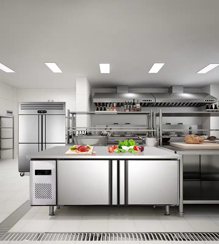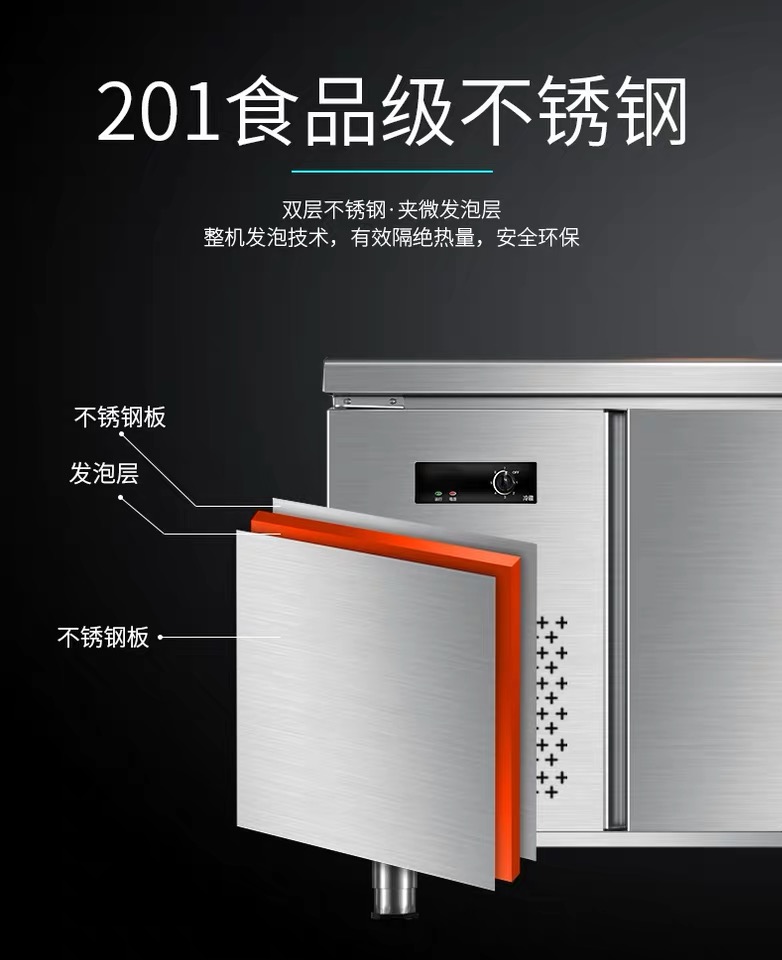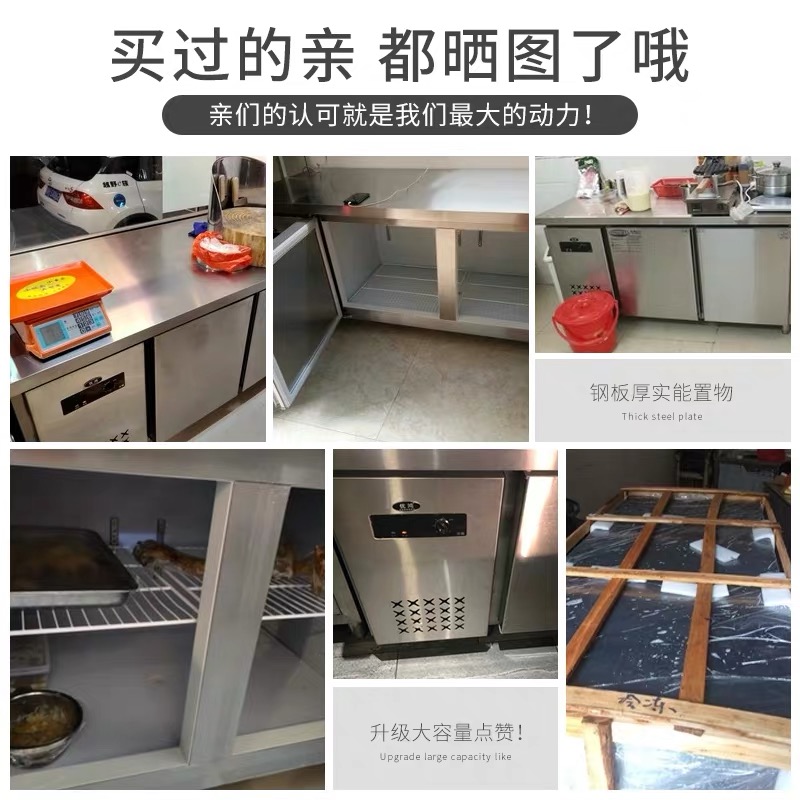Refrigerated frozen worktop Kitchen Commercial Ice Cabinet Fridge Twin Warm Frozen Preservation Cabinet Flat Cold Operation Table Milk Tea Shop