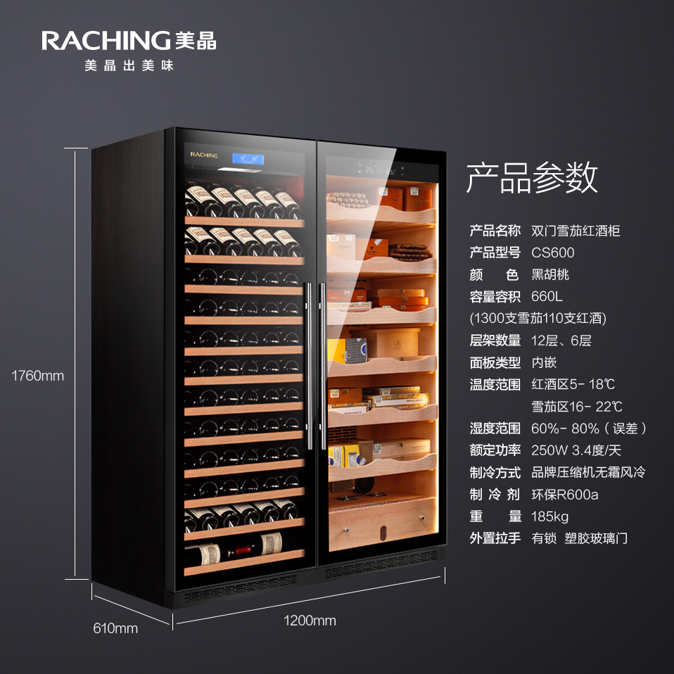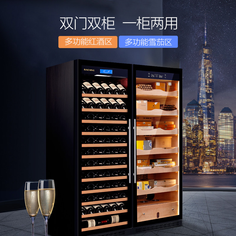 Raching Beauty Crystal Cigar Cabinet Custom CS600 Double Door Red Wine Cigar Integrated Cabinet combined thermostatic and constant wet cabinet